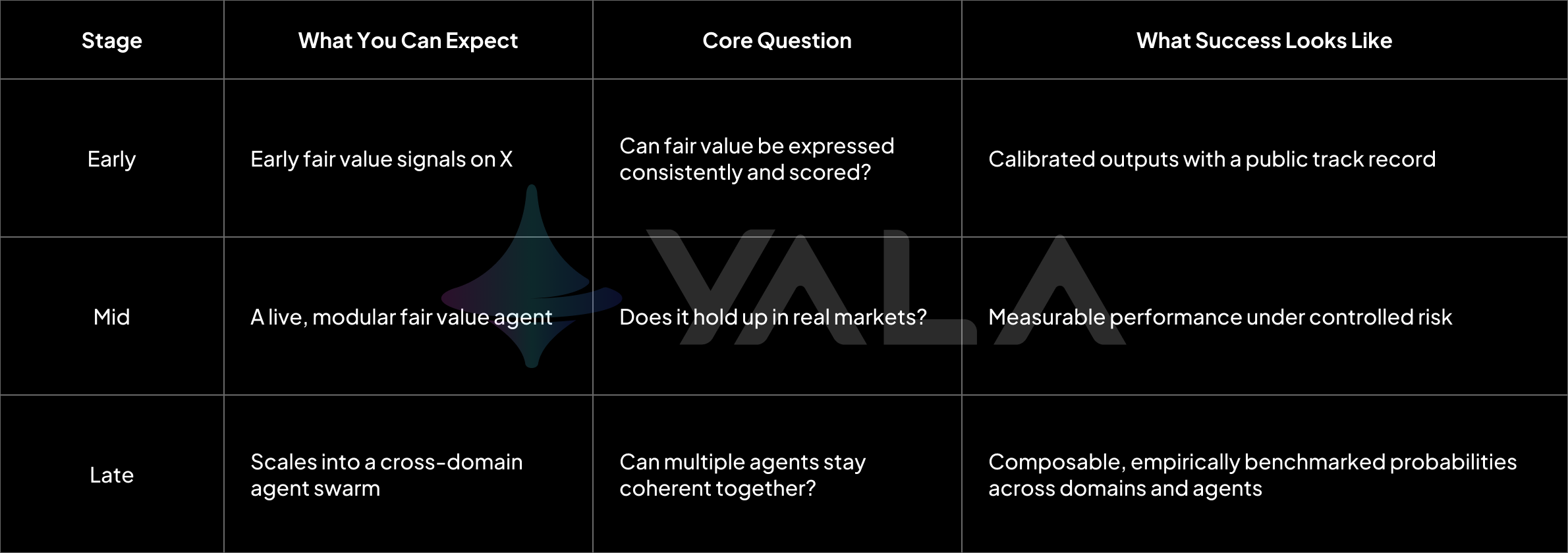 This article outlines Yala’s multi-stage roadmap, explaining why the platform is being built incrementally, from early fair value signals to a full multi-agent probabilistic system, and how each phase de-risks the next.